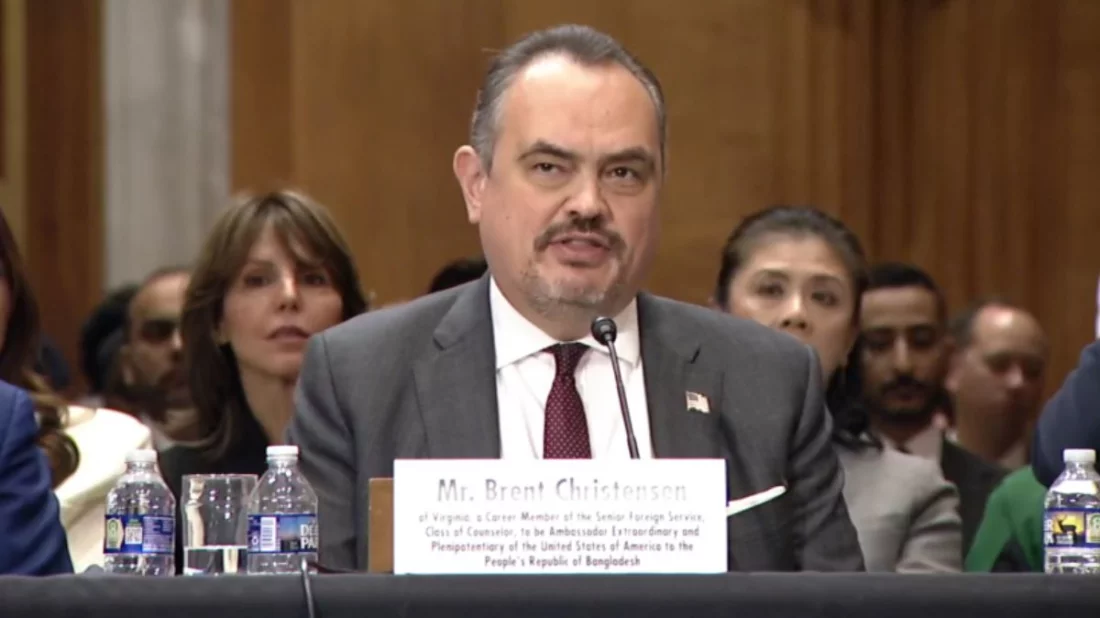 যুক্তরাষ্ট্রের ট্রাম্প প্রশাসন বাংলাদেশ ও ভারতের মধ্যে ভালো সম্পর্ক দেখতে চায় বলে মন্তব্য করেছেন ঢাকায় নিযুক্ত যুক্তরাষ্ট্রের রাষ্ট্রদূত ব্রেন্ট ক্রিস্টেনসেন। মঙ্গলবার (১১ ফেব্রুয়ারি) ব্রিটিশ সংবাদমাধ্যম রয়টার্সকে দেওয়া এক সাক্ষাৎকারে রাষ্ট্রদূত ক্রিস্টেনসেন এ কথা বলেন।ক্রিস্টেনসেন আরও বলেন, ‘যুক্তরাষ্ট্রের প্রেসিডেন্ট ডোনাল্ড ট্রাম্পের প্রশাসন চায় বাংলাদেশ ও ভারতের মধ্যে ভালো সম্পর্ক থাকুক। তিনি বলেন, আঞ্চলিক স্থিতিশীলতার জন্য দুই দেশের সুসম্পর্ক জরুরি। বাণিজ্যিক কূটনীতি নিয়ে ব্রেন্ট ক্রিস্টেনসেন বলেন, ‘অনেক মার্কিন ব্যবসা প্রতিষ্ঠান বাংলাদেশে বিনিয়োগের সম্ভাবনা খতিয়ে দেখছে। তবে তারা চায়, পরবর্তী সরকার শুরুতেই স্পষ্টভাবে জানাক যে দেশটি ব্যবসাবান্ধব। রাষ্ট্রদূত বলেন, ‘বাংলাদেশের জনগণ যে সরকারই নির্বাচিত করুক, যুক্তরাষ্ট্র সেই সরকারের সঙ্গেই কাজ করবে।(https://www.ittefaq.com.bd/774279/বাংলাদেশ–ভারত-ভালো-সম্পর্ক-দেখতে-চায়-ট্রাম্প)